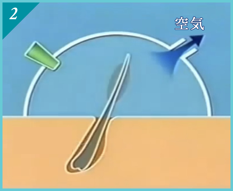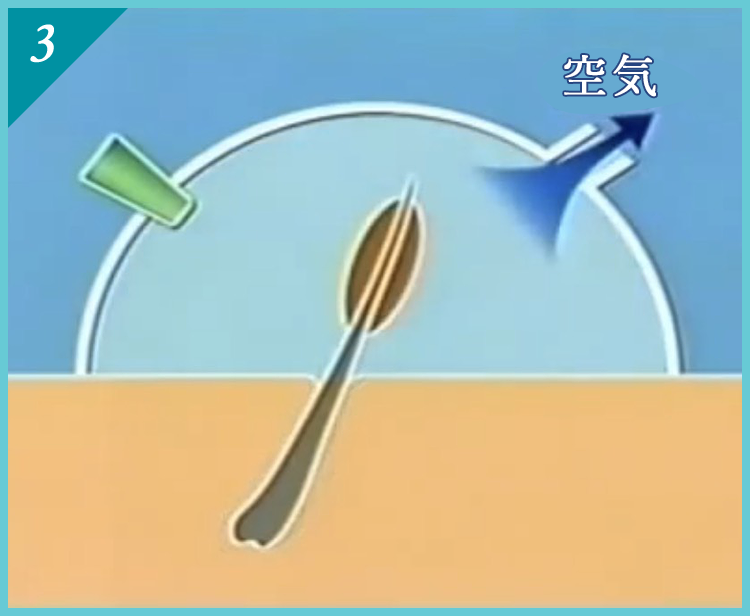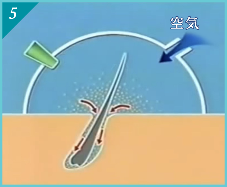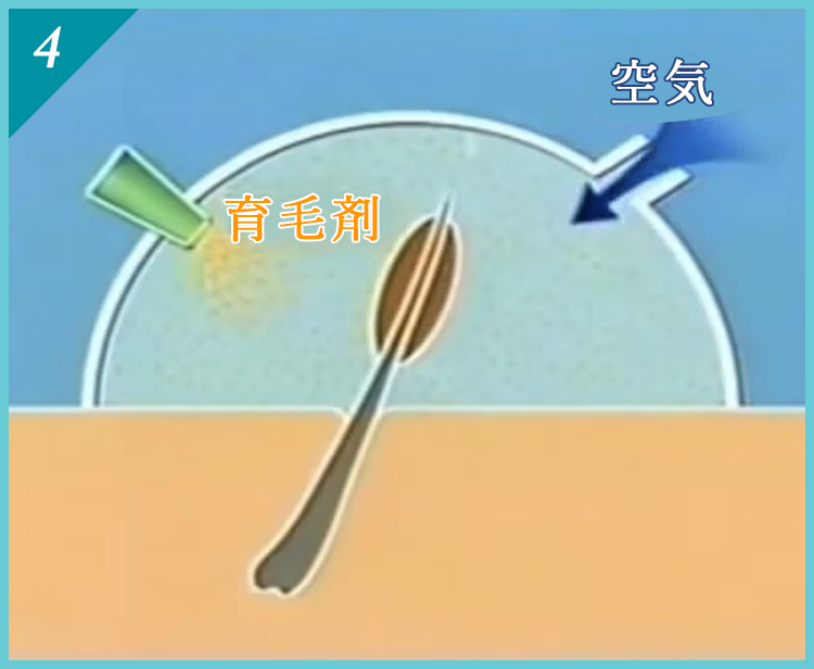 4.そして、次に育毛剤を吹き付け、同時に気圧を元に戻します。